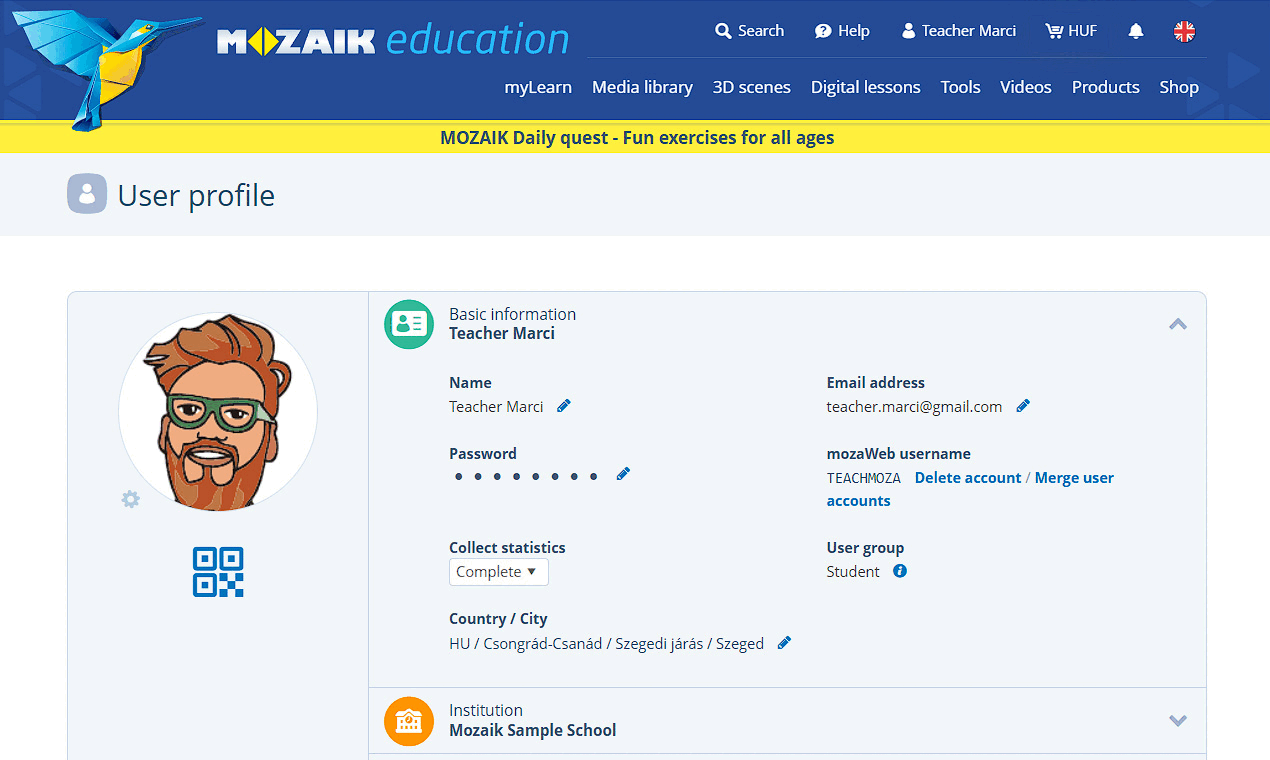 mozaWebのユーザーアカウントは、常にユーザーグループに属しており、教師または生徒のユーザーグループであることができます。