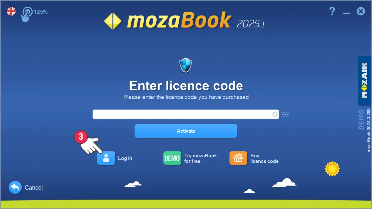mozaBook 会将您重定向到激活新代码页面(见上文),您可以在其中完成激活过程。
