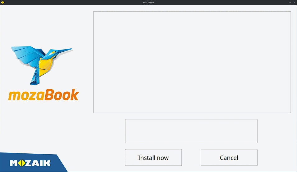 ヒント!mozaBookインストーラーをダウンロードし、Linuxインストーラーを起動するフォルダと同じフォルダにコピーします!Linux インストーラーは実行環境を準備した直後に mozaBook インストーラーを起動します。