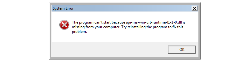 mozaBookを更新またはインストールしたい場合、初めて起動しました後、不足しているというエラーメッセージ api-ms-win-crt-runtime-l1-1-0.dll ファイルが表示されて、次をする必要があります。