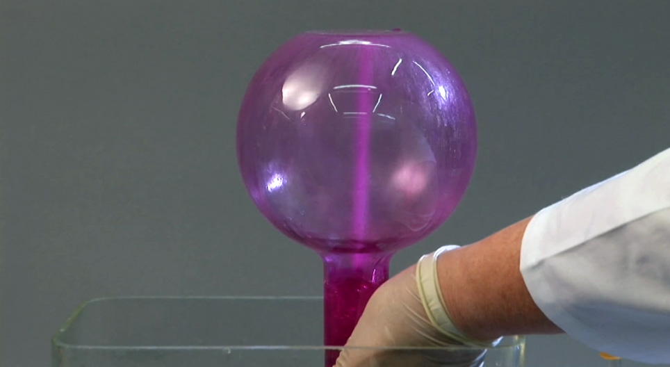 The dissolution process causes a drop in pressure, which draws water into the flask, creating a fountain-like effect.