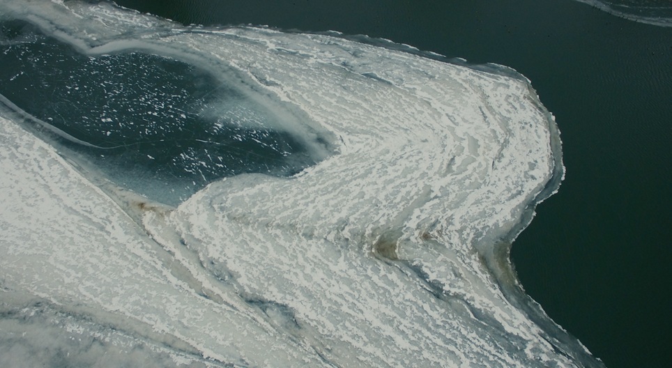 In winter months when it is cold enough the surface of even fast-flowing rivers can freeze.