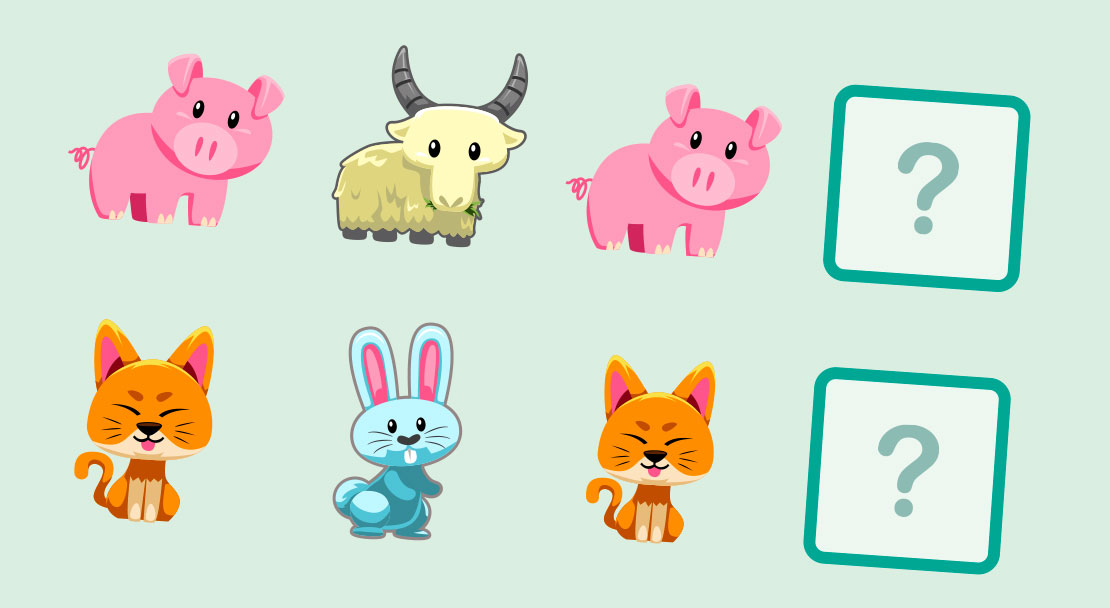 Find the logic of the patterns and complete them.