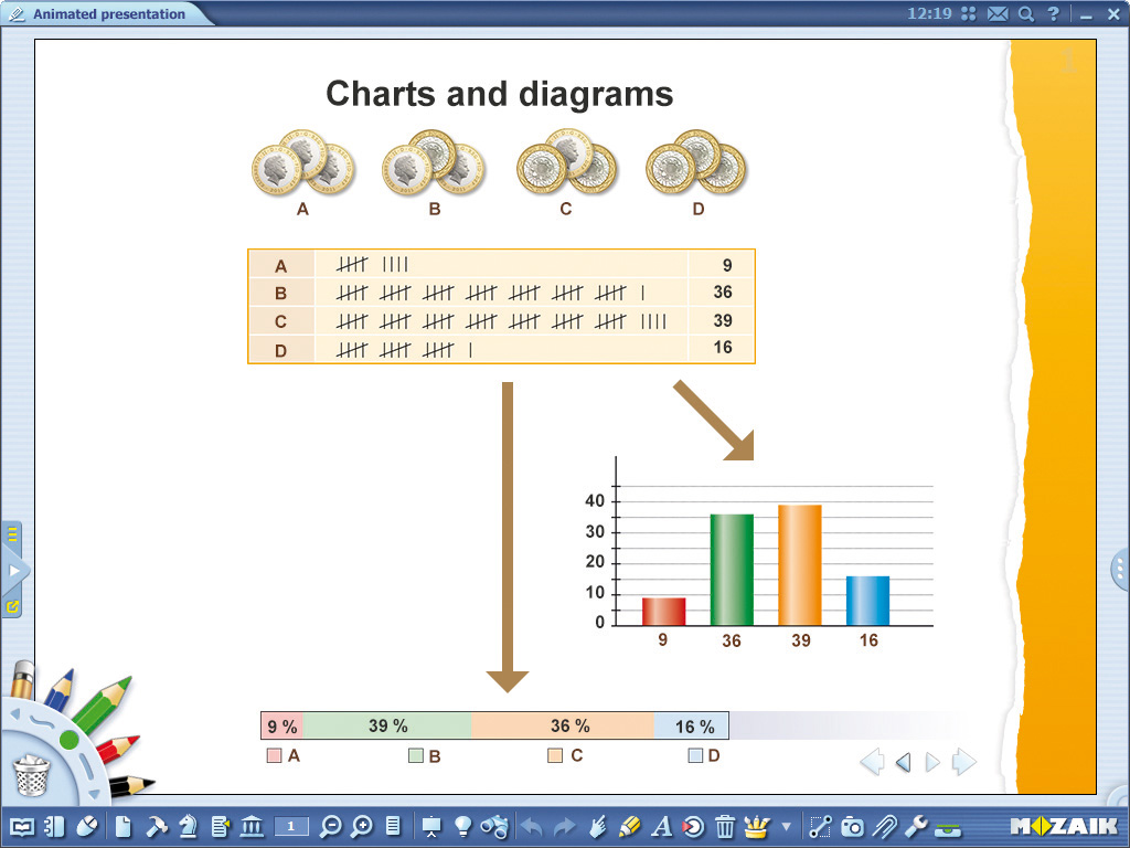 The mozaBook Animation editor is an excellent tool for spectacularly presenting a process or chain of thought and making interesting exercises, maintaining pupils' attention. It is only our imagination which can limit the possibilities, not the available tools or animation opportunities at our disposal.
