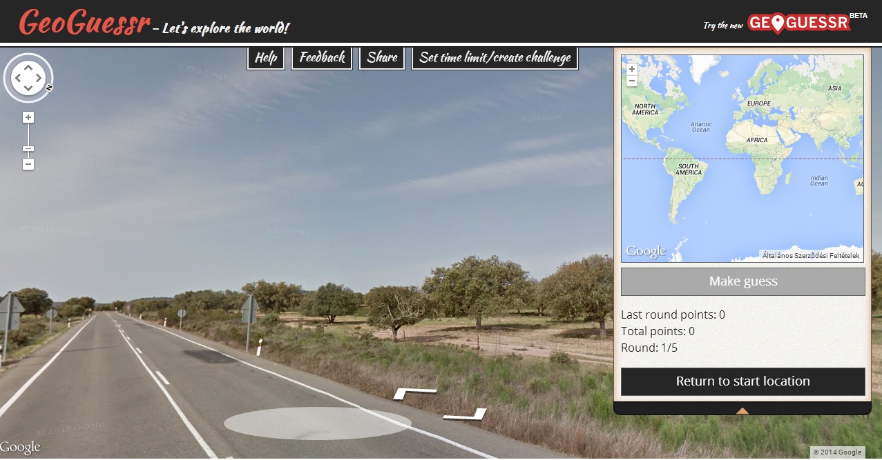 As a final step, we can make our guess and the system lets us know just how accurate our guess was. Visibly, we accumulate points for our guesses (1 game consists of 5 locations) and at this stage we can also learn the actual locations. Here we played by saying (or collecting) 5 famous writers coming from the country in question. I suppose it could even be possible to organize a treasure hunt that lasts for a few hours based on GeoGuessr, with various exercises.