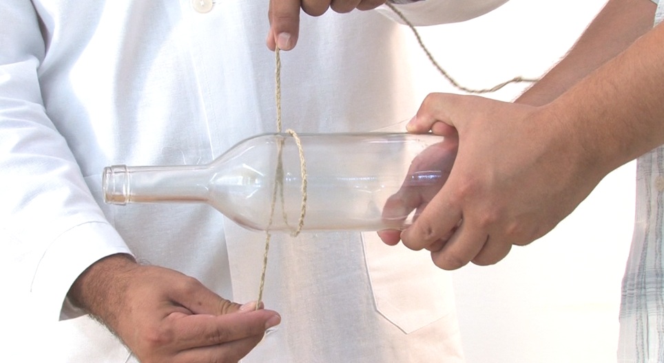 この実験では、我々は文字列でボトルを切断することが可能であることを証明します。