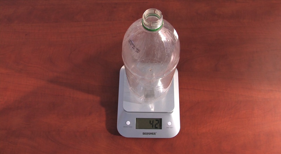 空気で満たされたプラスチックボトルの重量と破砕された一本の重量の間に違いはあるでしょうか?