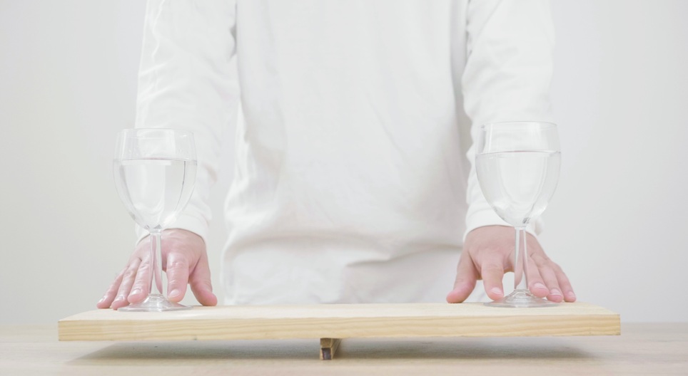 この実験では、私たちは水を2杯のバランスを研究するために浮力を使用しています。