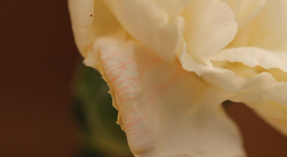 In this video, you can see how the water, coloured with eosin solution, moves upwards in a carnation.