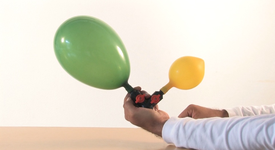 The pressure in two balloons can be equalised with a Y-shaped tube.