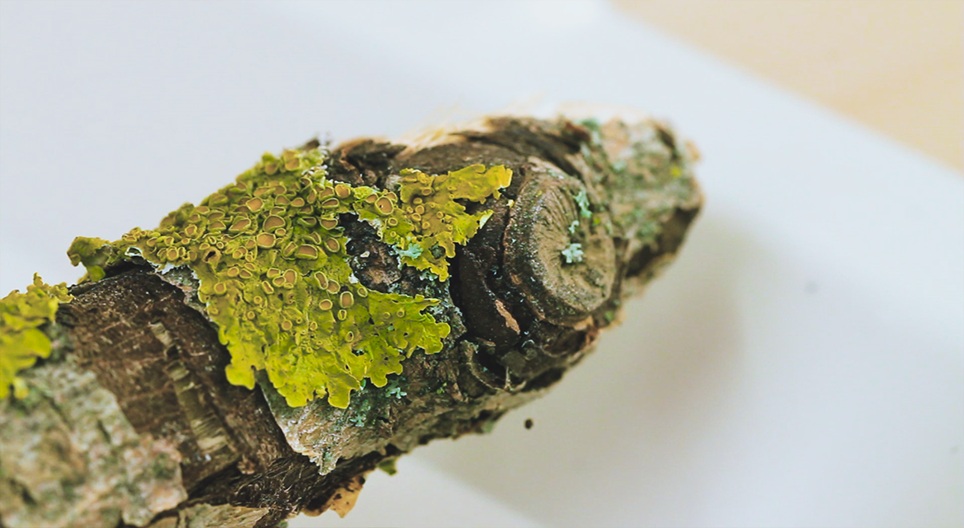 100배 이하로 확대 했을 때 광학 현미경 밑에서 보이는 균사와 조류의 세포의 혼합입니다.