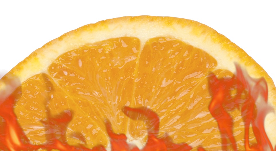 껍질 속에 있는 정유가 초의 불꽃 가까이에 있으면 불덩어리가 생깁니다.