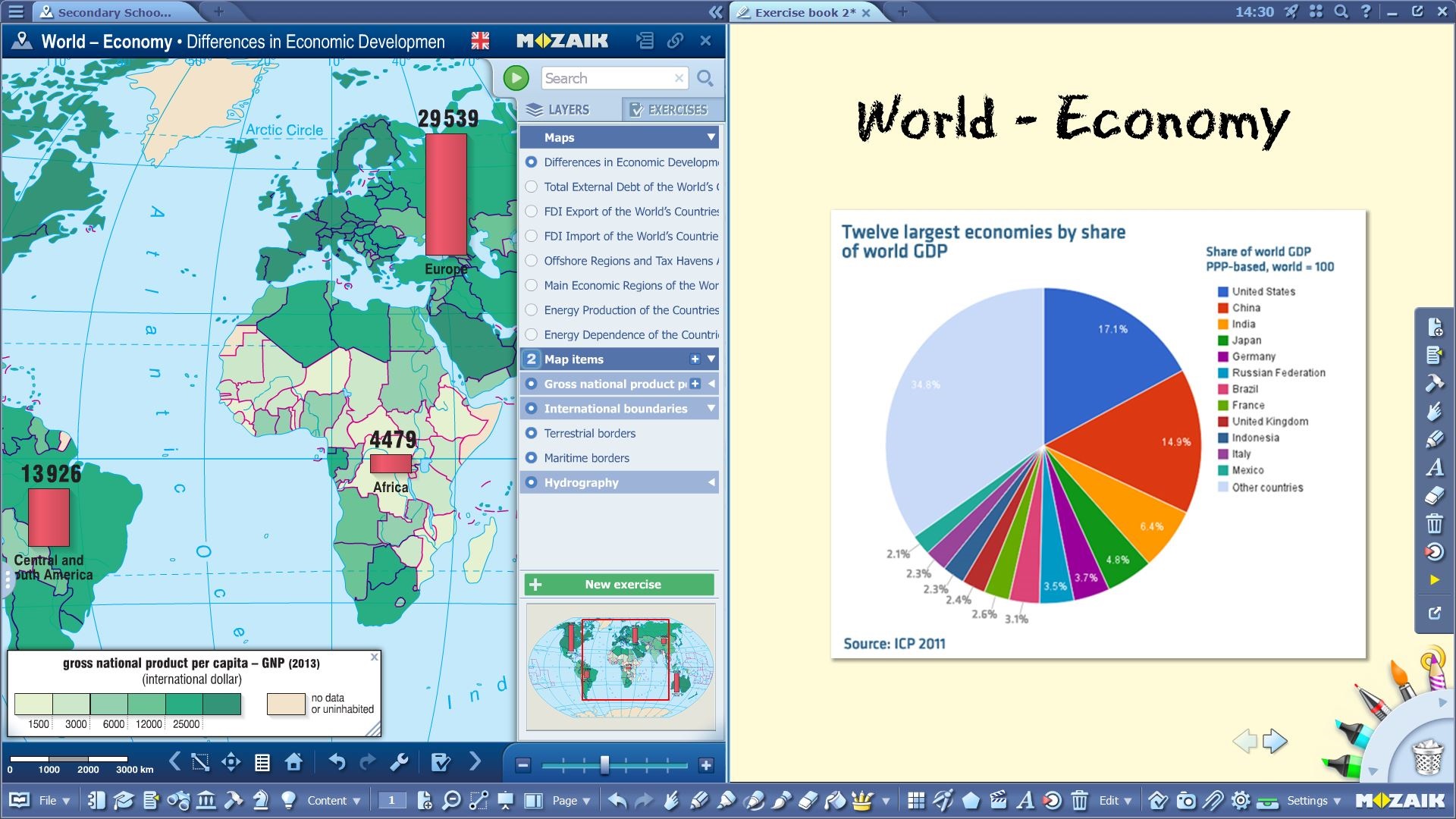 One of the major perks of transferring these atlases directly to mozaBook is that teachers can use these maps alongside their presentations or textbooks with the help of the split view option. There is no need to leave the interface or open any other program, just place your exercise book and the map next to each other and the lesson can begin.