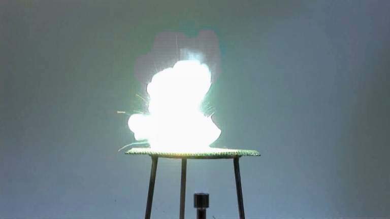 加热时,硫粉和锌会在高度放热的过程中相互反应。