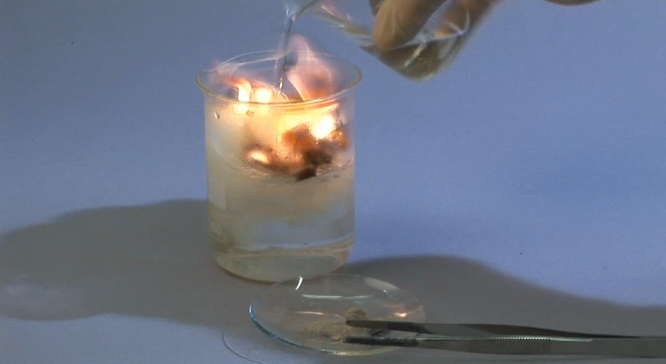 When acetylene is combined with bleach, a vigorous addition reaction involving flames occurs.