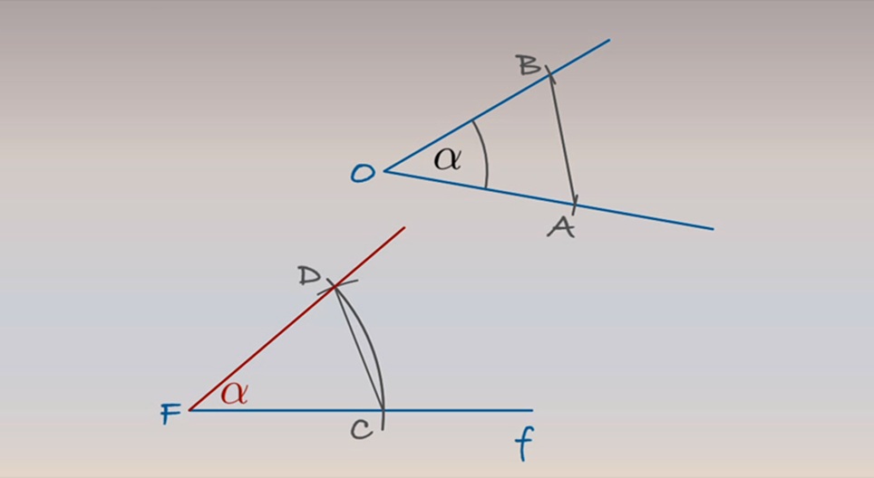 让我们复制一个从出发点F出发的给定的阿尔法凸角到线f。