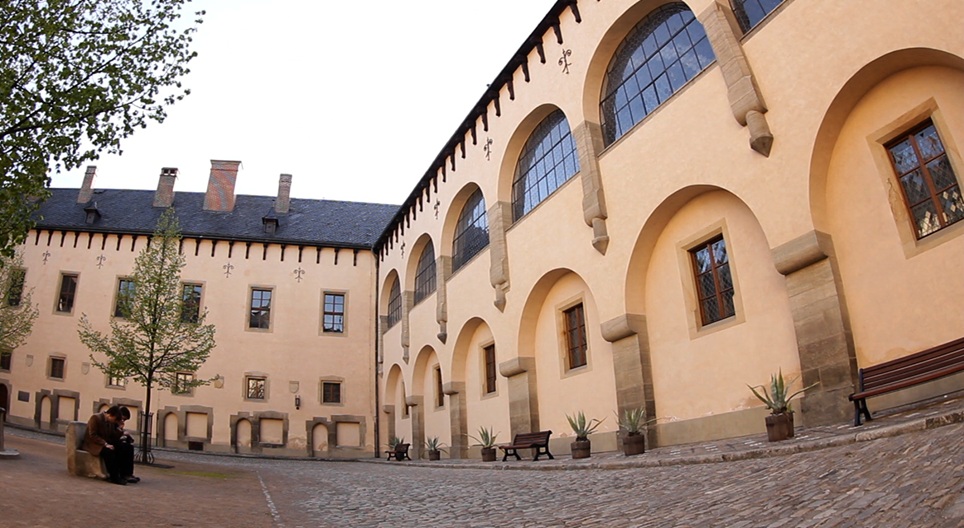 在一个庭院中的罗密欧与朱丽叶的著名阳台是这样设置的。让我们来围着它看看。
