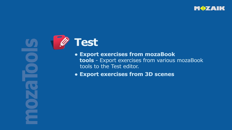 從各種mozaBook工具中導出練習到測試編輯器中。