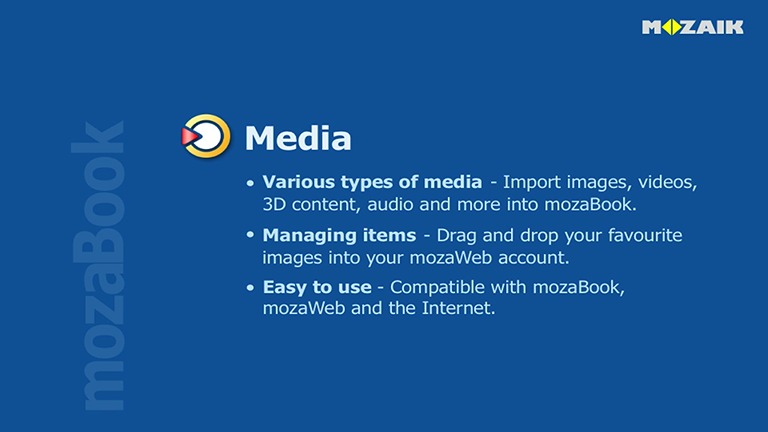 如何在mozaBook中使用媒體庫。