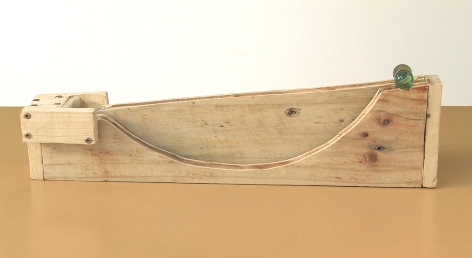 找出大理石是在直線還是曲線斜坡上先到達終點線。