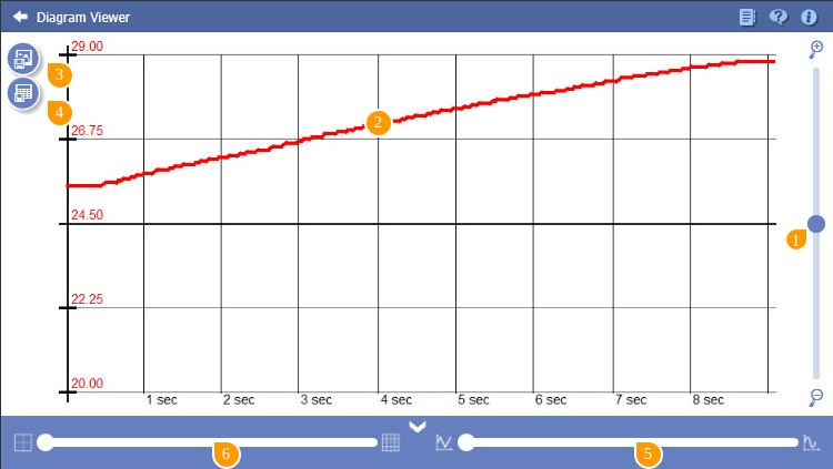 By selecting a point in the diagram, you can display its value and make the diagram draggable vertically. |